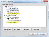 - Über die Schaltfläche <Hinzufügen> können neue Richtlinien angelegt werden. Es ist unbedingt darauf zu achten dass die Verschlüsselungsverfahren exakt mit den im Router konfigurierten Varianten übereinstimmen. In unserem Beispiel sehen die Richtlinien dann aus wie in Abb.: 3.9 gezeigt.