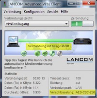 Damit sich die Benutzer nun auch tatsächlich einwählen können müssen die Zertifikate für den jeweiligen Benutzer in den Lancom Advanced VPN Client installiert und ein Verbindungsprofil erstellt werden. Alternativ lassen sich auch andere VPN Clients wie ShrewVPN oder The GreenBow verwenden. Die hier gezeigte Konfiguration des AVC verläuft bei anderen Clients zwar ähnlich, lässt sich aber nicht direkt übertragen.
