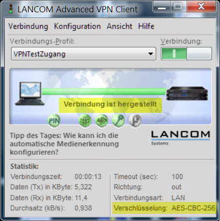 Ist alles korrekt konfiguriert, sieht der AVC nach aufgebauter Verbindung wie folgt aus: